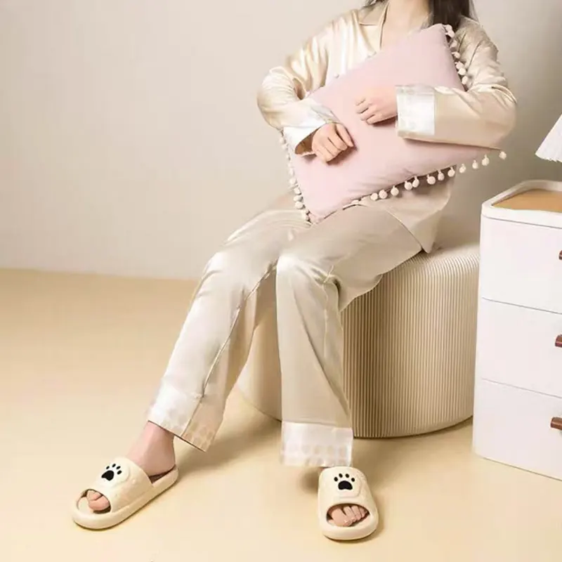 Mūsų mielos pėdsakų šlepetės yra be vargo nešiojamos, atnešančios raminantį ritmą į gyvenimą ir švelnumo prisilietimą. Storas padas suteikia papildomą komfortą, suteikdamas kojoms švelniai. Minkštas, pavasariškas padas leidžia patogiai pasivaikščioti per debesis, švelniai, atšokusį.