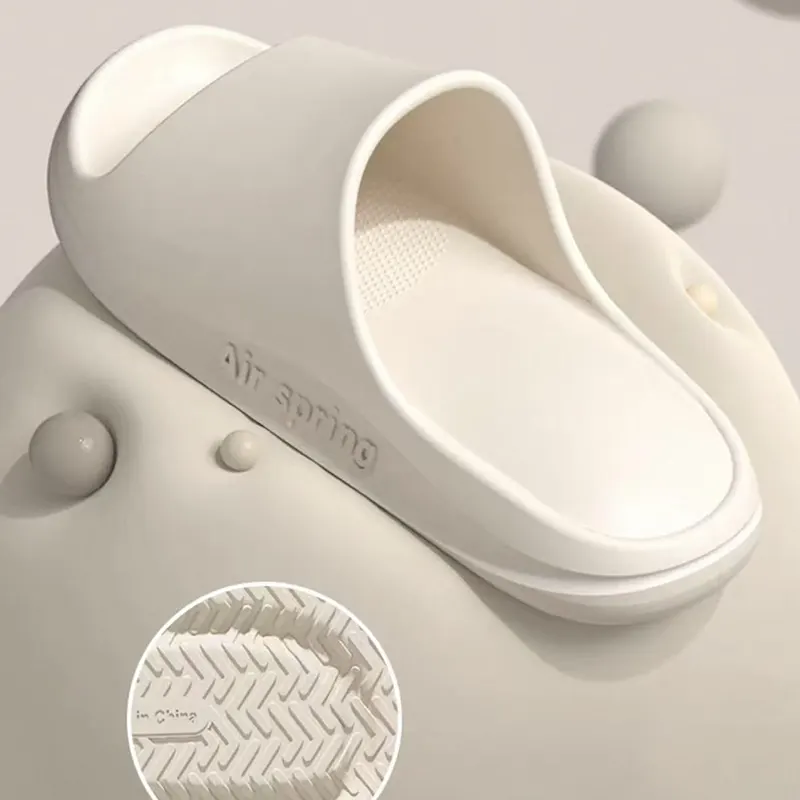 Mūsų paprasti oro pagalvių sandalai priima patogų dizainą namuose, o minkšta ir elastinga kojų lova yra patogi. Mes naudojame lengvą EVA medžiagą, kurią lengva dėvėti be svorio, minkštų ir elastingų su atrama, ir imitacijos padangų anti-slydimo tekstūrą, tvirtai sugriebiančią ir nuo slidumo.